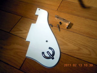 使ってないので、自分でもわけ分からん!トレモロアームも外して、ユニットが動かないようにボディー裏側に堅い木が入れてあります。出力ジャック部も変です。