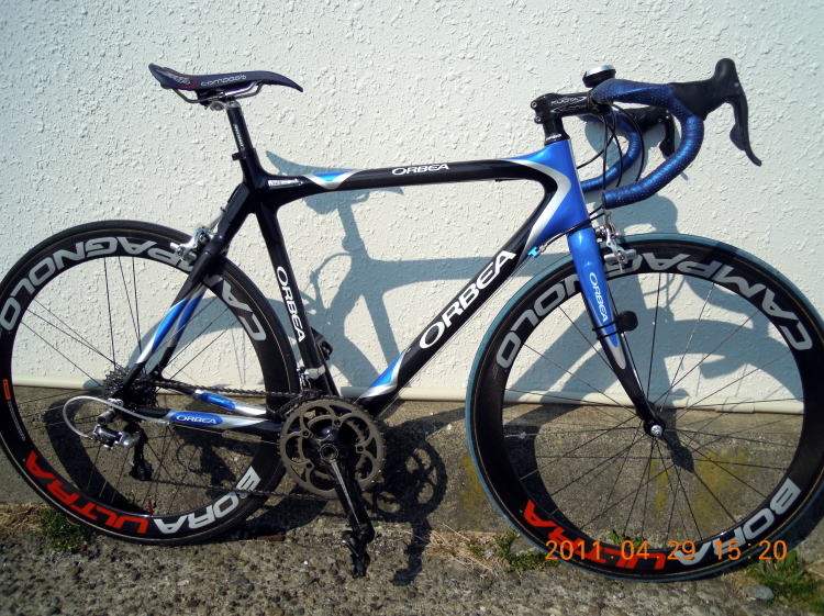 やっぱりOrcaが最高!と思うけれどアマチュアには所詮、高嶺の花?現行モデルのストレートフォークになる前(2008?)のタイプです。スペインのマスプロメーカーということで、細かいところを見ると(特に接合部が)多少荒い部分もありますが、塗装の出色がとても良いしコストパフォーマンスは最高です。DE ROSAのタンゴのようなイメージを出したかったので、あえてBORAとの組み合わせを選びました。見た目とは裏腹に、乗った感じが軽いし、上りでも進んでくれます。唯一の弱点は強い風(煽られます)。 Onixの話