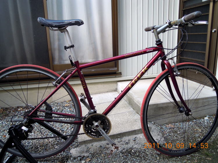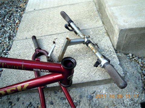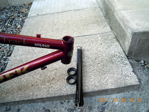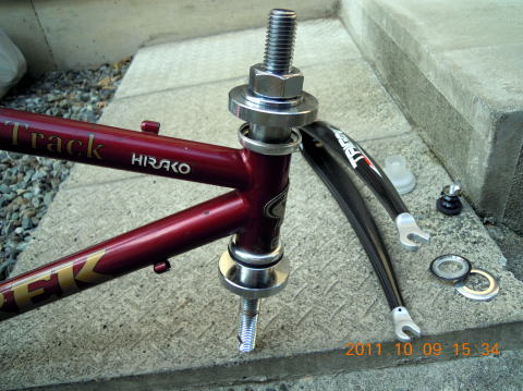 いつもは控えのTREK Multitrack、今回は主役で頑張ってもらいます。ちょっと見では何も悪いところは無さそうなのですがヘッドチューブのベアリングが破損しています。現在主流のアヘッドタイプに交換すべく作業を続けます。