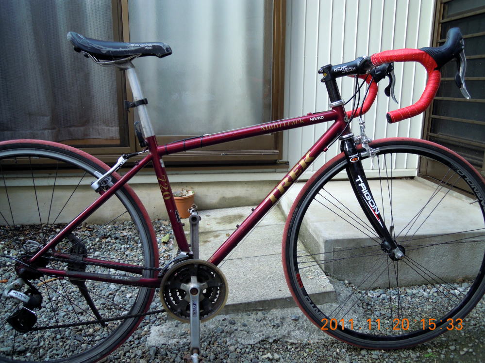 また1ヶ月以上のブランクとなってしまいましたが、本日ようやく作業完了。これが使えなくなったのは震災後しばらくしてからの事なので、8ヶ月程は経過したと思われます。バーテープはやはり赤にしました。思っていたほどケバケバしさはなく、手前味噌ながらなかなか良い出来です。