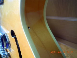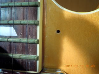 使ってないので、自分でもわけ分からん!トレモロアームも外して、ユニットが動かないようにボディー裏側に堅い木が入れてあります。出力ジャック部も変です。